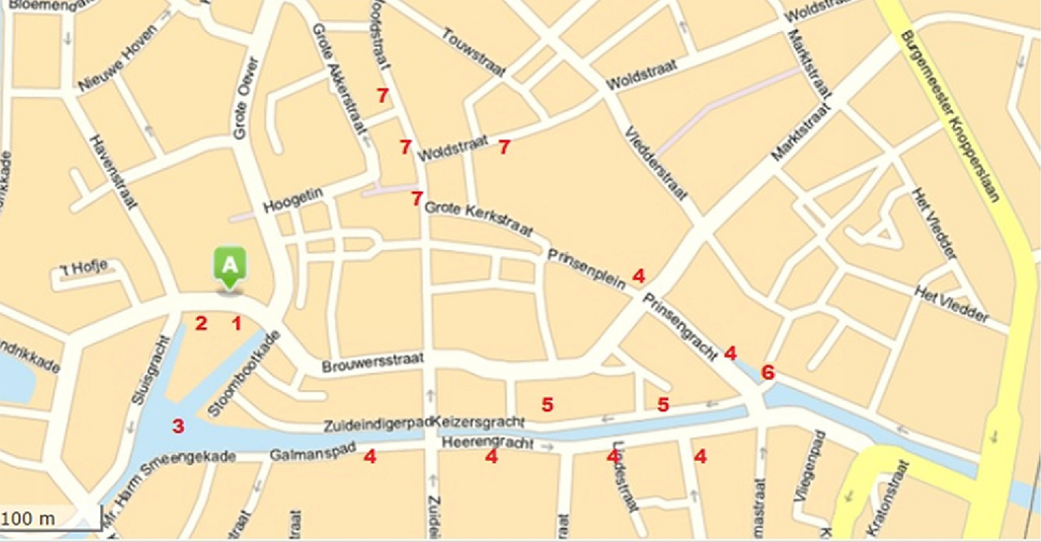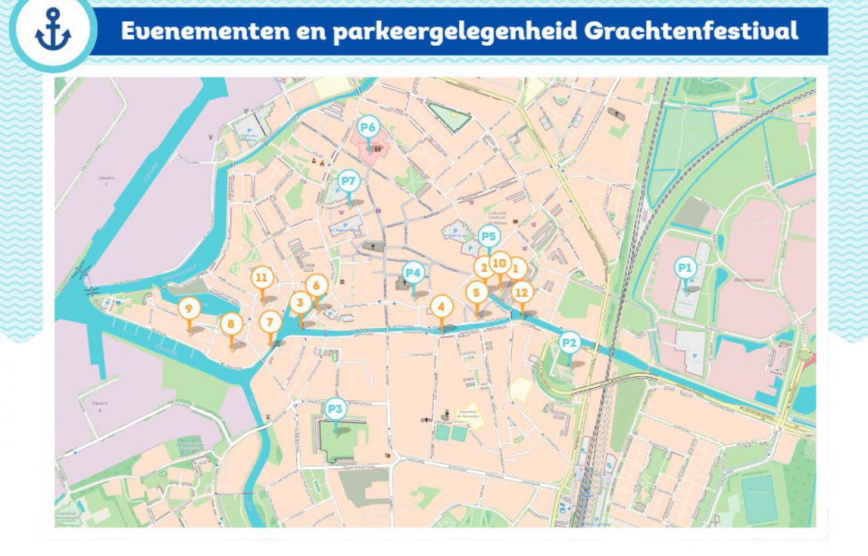 Kaart met locaties van de evenementen tijdens het Grachtenfestival.
